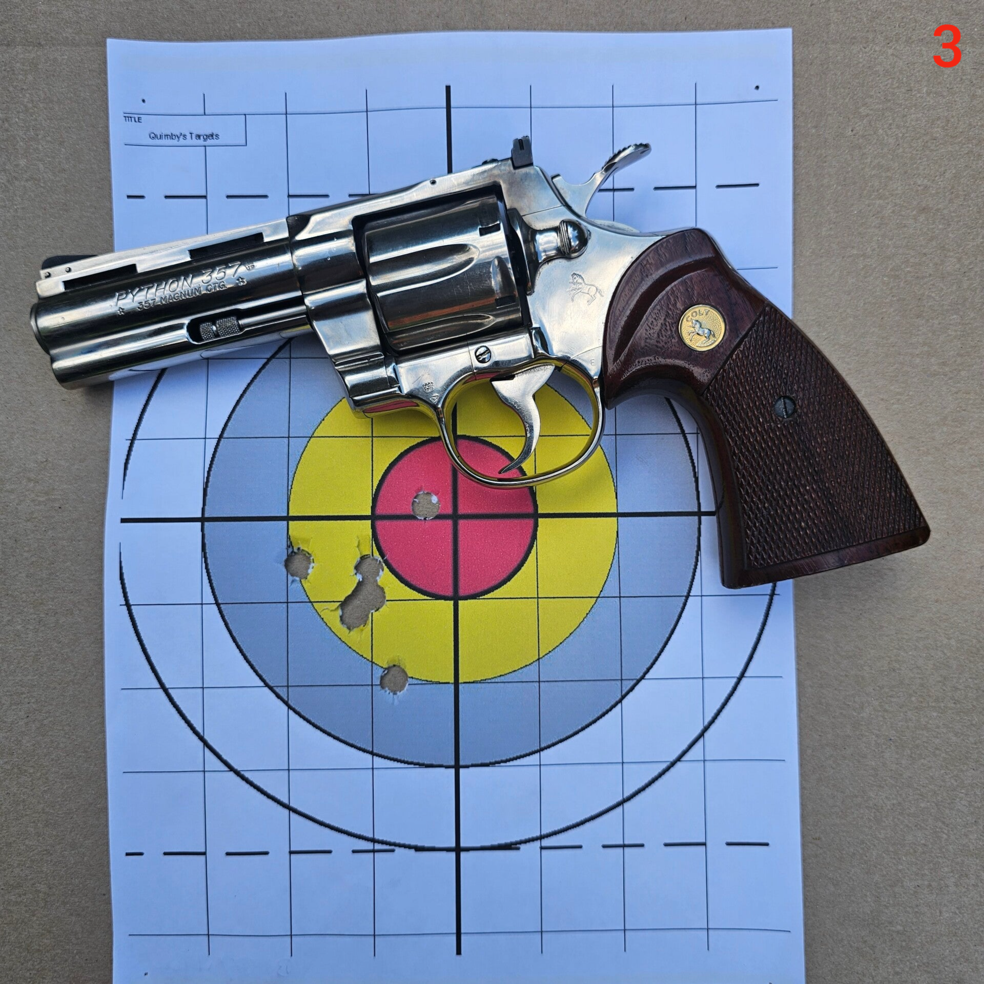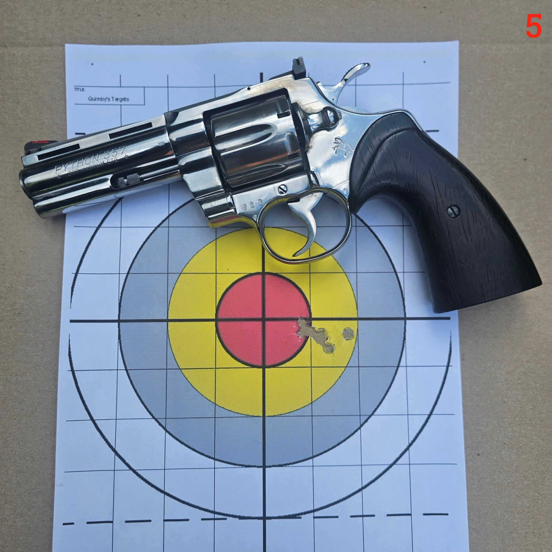 Je passe ensuite avec le 2ieme Python. Même condition, 1er tir avec de la 357, suivi de 2 avec la 38 spécial.